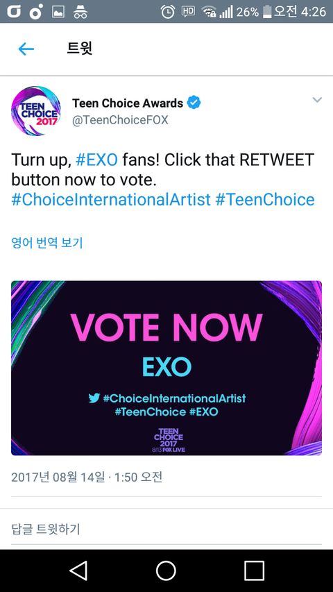 My #TeenChoice vote for #ChoiceInternationalArtist is @weareoneEXO #EXO