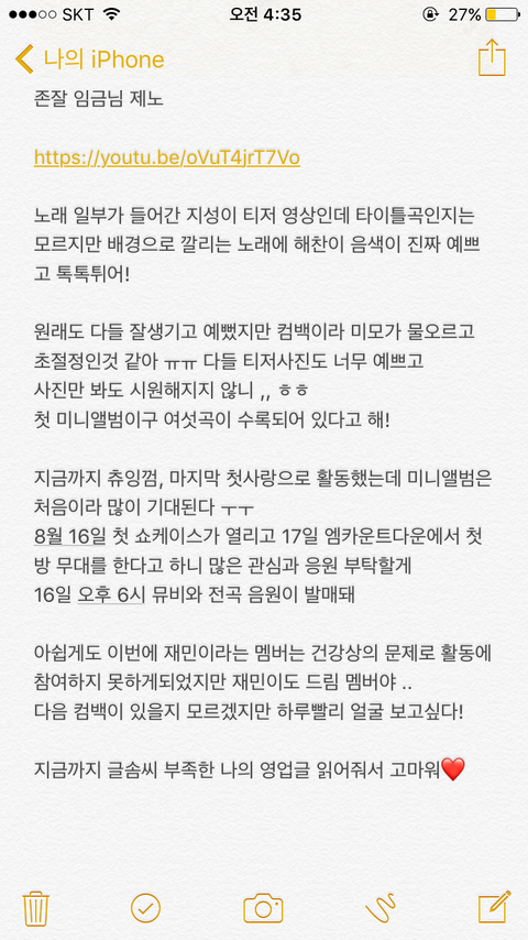 이번 컴백에 관련된 글이라던지 사진, 움짤 넣어줬으면 좋겠는거 댓글로 말해줘 !