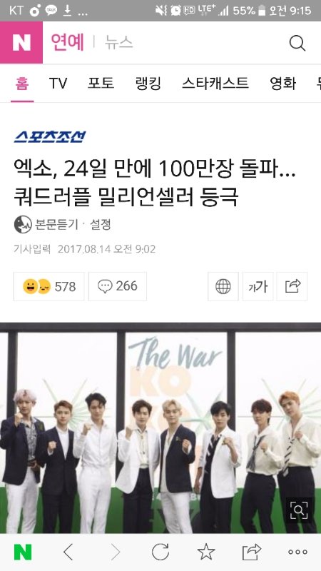 처음으로 댓달아보는데 전 이번에 코코밥통해서 엑소팬이된 한달도 안된 신입 엑소엘이에요. 처음으로 아이돌 앨범도 사보고 스밍이라는것도 돌려봤는데 요즘 너무 행복해요. 엑소가 지금의 위치까지 오기까지 엑소와 엑소엘이 얼마나 힘들었는지 알아서 뭔가 다된 밥상에 숟가락만 얹는 기분이라 팬톡에서도 그냥 눈팅만 하고 있었는데 기사 보자마자 너무 신나고 나까지 이제 부심이 들고 그러네요. 오늘은 축하하는 입장이고 다음 엑소의 역사를 쓸때는 나도 함께 축하받는 그런 진짜 팬이 되었으면 좋겠어요 엑소 엑소엘 진짜 축하해요