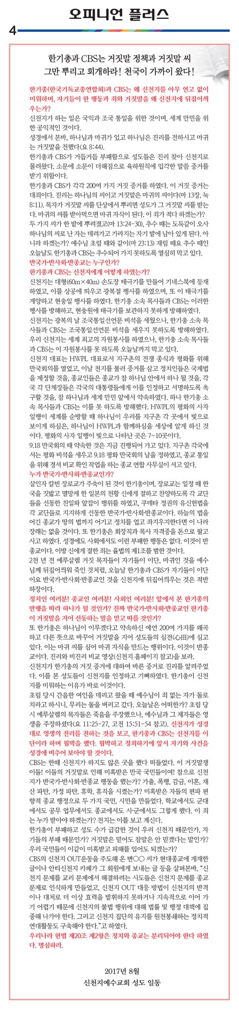 부디 한기총과 CBS는 그 죄를 회개하고 다시 거듭나 참신앙을 회복하길 바랍니다.우리 신천지에선 한기총과 CBS의 거짓 증거를 바른 증거로 고쳐서 알려주고 있습니다.참으로 하나님 예수님을 믿는다면 말씀따라 신앙하기를 간절히 촉구하며,열린 계시말씀을 배우고 깨달아 하나님의 바램처럼 모든 믿는 사람이 구원에 이르시기를기원하는 바입니다. 이상 기독교 핫이슈 포스팅이었습니다. 감사합니다.