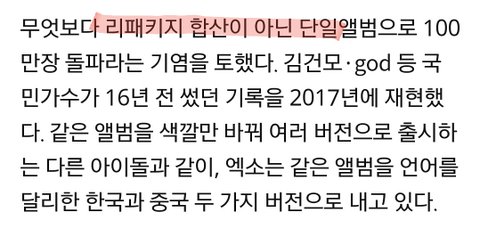 이번 정규 4집은 2001년 김건모 7집(139만장)과 god 4집(180만장) 이후 16년 만의 단일앨범 밀리언셀러임