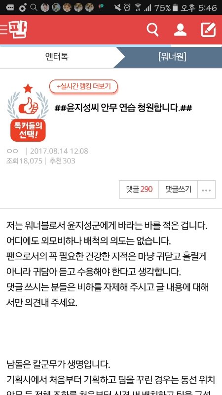 올팬인데 왜 또 까글올라왔잖아 엔1터에 없었어서 못 본거니? 핸즈온미 나야나 십만십 다 까 십만십 덤블링은 진짜손다쳐서 덤블링 못한거라 백번을 말해도 눈막귀막이고 나야나 이번에 에센엘에서한거는 틀린것도없어 근데 진짜 이거 글쓴애가 누군지는 몰라도 배진영이랑 라이관린 머리채잡고 진짜 아니 얘는 노력안하겠냐고 어떻게 춤 스타일이 같아 다 개성있는거지 조카빡친다 ㅅㅂ