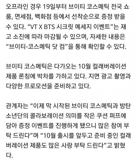 브1이티 여장품 콜라보제품이랑 광고는 10월에 나오나봄