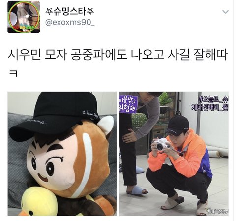 시우민과의 커플 모자가 방송타서 좋아하는 빅굴
