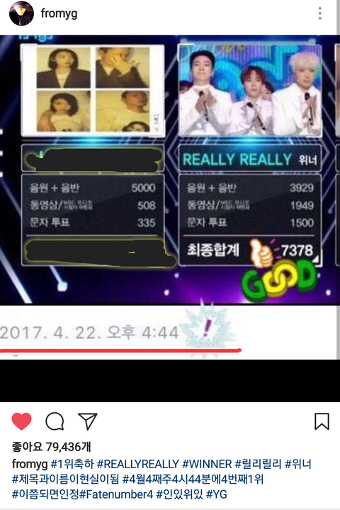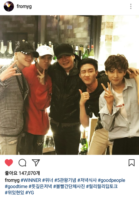 양현석이 위너한테 인스타로 1위 축하 글까지 올리고