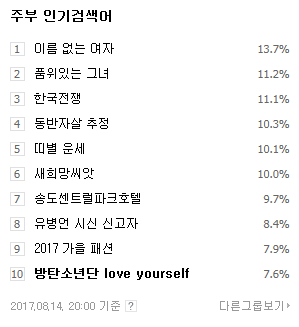 애들 지금 주부인기검색어 10위다~~