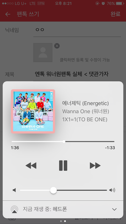 ㅇㅇ 별 이상한 년이 집안싸움 자랑하네 워너원보다 자기 기분이 제일 중요해