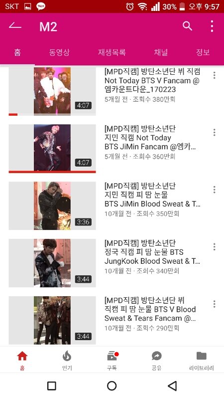 M2채널에 인기영상 윗부분이 거의 방탄임ㅋㄱㄱㄱㄱ 뿌듯함ㅎㅎ