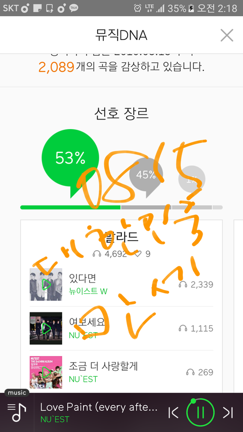 새 진이 나눔듣기 링크 및 2시차트