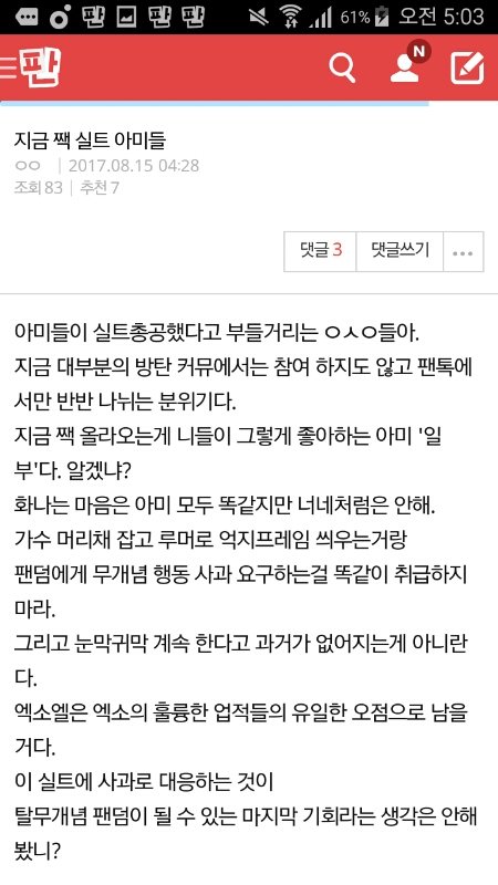 지네팬톡은 실트총공 안했다면서 사과할때까지 저 실트가 안내려갔으면 좋겠다는건 무슨심보임?