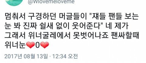 ㅋㅋㅋㅋㅋㅋㅋㅋㅋ이렇게 말할 만큼 위너랑 인서들은 가수와 팬 사이 이상으로 뭔가 사랑하는 사람같은 느낌이야ㅠㅠ
