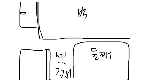저기 벽 뒤로 저랑 친구가 있는 방이고 문이 있는곳에 화장실 입니다.