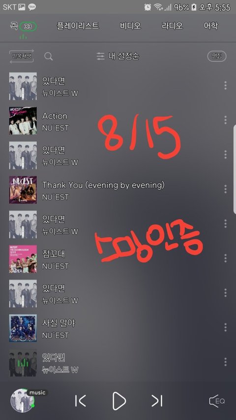 ㅍㄷ로 동호한테 입덕했다가 뉴이스트로 입덕했어요(물론 아론포함이요!!) .. 정말 소소하게 좋아하고 있었는데 어느날부턴가 ㅇㅌㅂ나 ㅎㅇTV로 찾아보고있네요~~~ 아이돌을 이렇게 좋아한게 처음이라 아직은 어색하고 어떻게 할지도 모르는데...ㅠㅠ 일단은 공카는 바로 가입하고 여기에 글을써봅니다!!!!!!혹시 공지나 이런건 어디에서 볼 수 있는건가요? 판에다가 글쓰거나 이렇게 팬톡에와본적이 없어서...잘못된거있으면 얘기해주세요~~바로 수정하겠습니다!!! 스밍은 저렇게 돌리는거 맞는거죠?? 항상 있다면만 들었는데 여기서 찾아보니까 리스트도 있는거 같아서 사진에 올린거처럼 바꾸긴했는데 맞는지 모르겠네요ㅠㅠ 아무튼 열심히 팬활동하겠습니다!!
