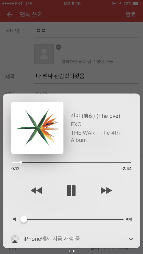 관람인데도 힘들다 시바ㄹ 근데 시야 조카좋아서 내쪽에선 경수 종대 민석이 꿀떨어지는 눈으로 얘기하는거 다 보이고 오른쪽에 있는 멤들은 교통체증때문에 잘 안보였음
