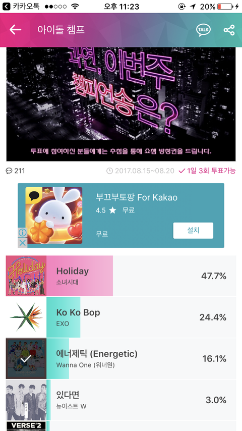 멜론 뮤직어워드랑 쇼챔투표하자!! 하루에 세번가능해