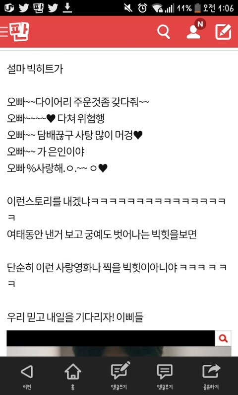 반응안좋다던이삐들 아까어떤 이삐가 글올렸는데