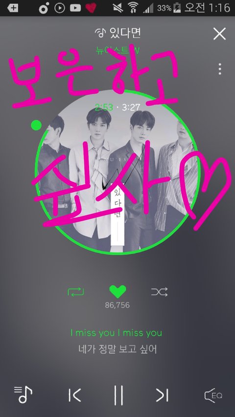 아 오해는 ㄴㄴ 댓글은 일체 안 달고 눈팅만 하고 있으닠ㅋㅋㅋ지금 노래 악개분들 등장해서 서로 배틀 아닌 배틀(?)이 붙었는데 뭔가 울 애들 노래 인정받는 것 같아서 뿌듯하지 않니