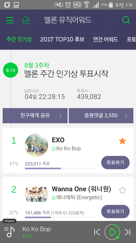 ✔2위와 61,525표차, 점유율차 14%