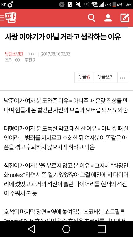 남준이랑 여자 분 공통점도 그렇고 이 이삐 궁예대로면 애들은 자기 자신에게 스스로 자신감이 없었는데 (아니쥬에서 다들 힘들게 살면서 자신이 살고 있는 인생이 부질 없다고 느꼈을 듯) 어느 날 애들이 각자 위치에서 저 여자분들을 보고 무언가 교훈?을 얻고 자기 자신을 사랑하는 이야기일 수도 있다고 생각해..ㅋㅋㅋ주제도 love yourself 니까 그냥 사랑 이야기로 흘러가진 않읗 듯