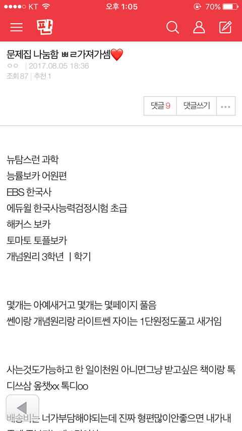 너무 고마워! 허접한 후기지만 진짜 너무 잘 받았고보내준 성의만큼 진짜 열심히 잘 풀게 ㅠㅠ 항상 고맙고 좋은 하루 보내!
