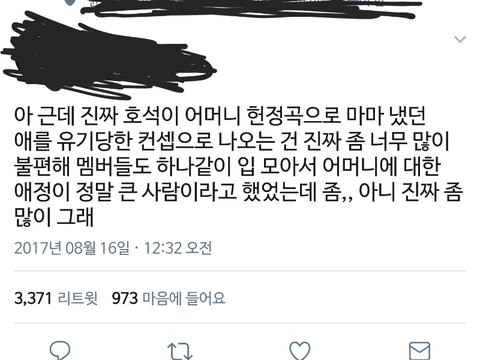난 이거 넘 이해안가던데. 마지막 장면은 아니쥬와 쇼트필름의 호석이 캐릭터를 설명하기위한거잖아. 어릴적충격과 결핍으로 인해 아프게변해버린 호석이, 그 캐릭터속의 호석이와 현실의 호석이랑은 구분해야지. 마마는 현실의 호석이가 부른건데. 둘다 엄마관련이라 묘하게 부딪히는 느낌은 있는데 왜 가상의 캐릭터설정에까지 간섭하는지 모르겠어. 태태 살인설정때는 가만히 있더니. 태태는 뭐 그럼 부모에대한 사랑이 없어서그랬겠어 그거아니잖아