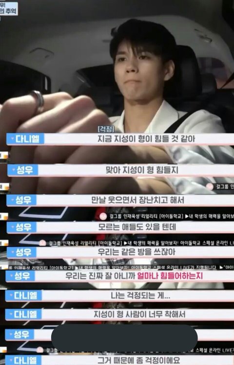 윤지성 인성 좋은거 모르는 사람은 진짜 ㄹㅇ 없어야 함. 인성이 안 좋거나 평소 행실이 안 좋았더라면 연습생들이 뽑은 고정픽 1위, 워너원 리더같은거 멤버들이 함부러 주겠음?? 그리고 배진영 아플 때 옆에서 챙겨준 거 윤지성이고 박우진 눈 다쳤을때도 옆에서 챙겨주고 손선풍기까지 쐬어준거 윤지성임. 권현빈이 긴장해서 음 제대로 못 잡을 때도 괜찮다며 토닥여준 것도 윤지성임. 그리고 자기 보컬자리까지 양보하면서 래퍼 두줄 소화해낸 것도, 그 와중에 센터수준으로 존재감 드러낸 것도 윤지성임.