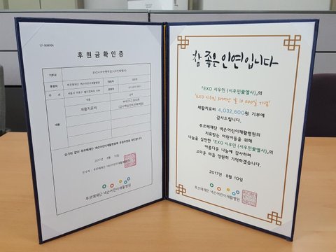 시우민 10000days 기부인증서!!