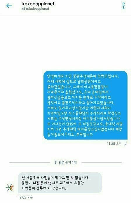 내가 말하는건 너네가 계정을 도둑질 한 팬덤으로 몰고 간 것에 대한거야 증거도 하나 없이