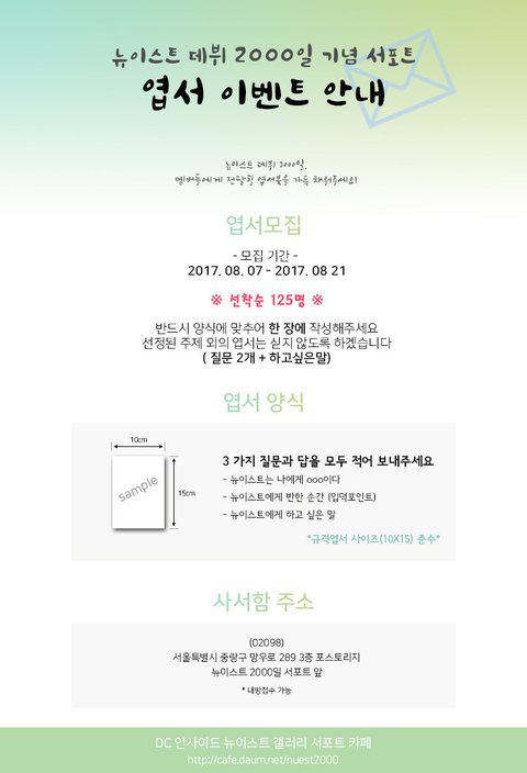 이번에 뉴잇 2000일 기념 엽서 이벤트