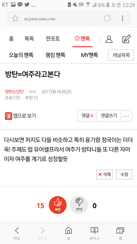 오늘도 팬톡은 후고구려의 후예들이 남아있슴다...☆
