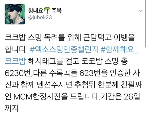 스밍 열심히하는 우리 웅녀 여러분 민석이 MCM 친필사인 이벤트에 응모하세요 >.<