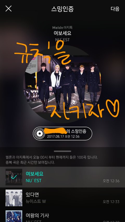 스밍인증 스샷에 낙서하고 올려야하고..공기계로 돌리는 러브들은 아지톡을 깔아서 스밍인증+닉넴지워야해~ 가끔가다 공기계라서 스밍인증을 못한다는 경우에는 글쓰는걸 조금 참았다가 인증할수 있을때 글을써줘~!