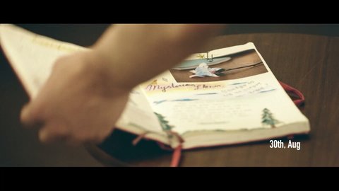 다이어리에는 꽃 스메랄도 꽃말은 전하지 못한 진심 탁자에는 백합 꽃말은 순결, 변함없는 사랑임