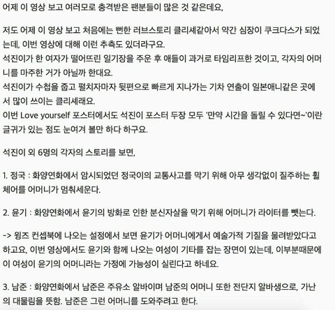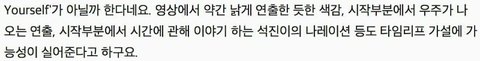 일단 석진이가 노트를 줍줍 할때 화면이 검정색으로 변하구 시간이 몇초 지난다음에 정국이 부터 멤버 한명한명 나오잖아!