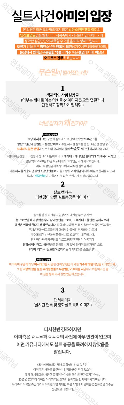 모르는 사람이 봐도 이해할 수 있을정도의 입장글을 쓰려면 이삐들 도움이 필요해. 임시로 번호도 넣고 비워놨으니 의견줘!