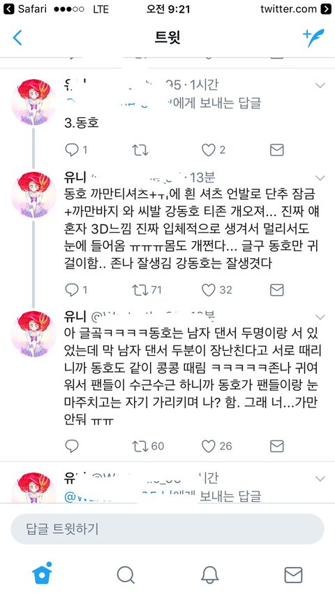 동호후기원해서 쓸게!!!! 동호 진짜 실물 그 여왕의기사때 동호같음ㅠㅠㅠ지금이 살 빠진건진 모르겠는데 나는 그때 동호인데 하ㅏㅏㅏㅏ나도 강하게 안생기고 오히려 훨씬 부드러운 여기사 동호같았오ㅠㅠㅠㅠ개인적으로 눈하고 눈썹 미쳣다고 생각함...하 진짜 처음 입장할때 대기하고있는 동호뷰터 봤는데 진짜 ㄹㅇ모델같음 얼굴도 작은데 아 진짜 어깨 태평양이야 진심 뻥 하나도 없음 하 그리고 동호 여보세요 애드립할때 꽃가루 떨어지는데 그때 그 꽃가루 쳐다보거든? 그거 방송에 안나오면 암넷 죽이러간다