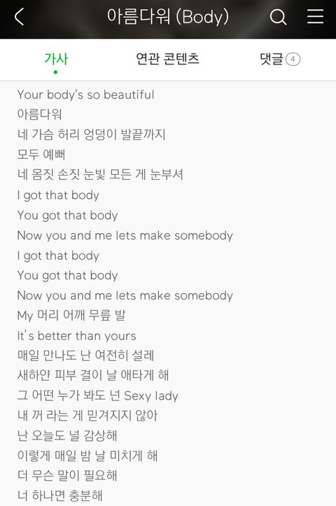 멜론리뷰보다가 봤는데 가사 너무 여성 성상품화 심한거아니야...? 지금 나왔음 조카 난리났을텐데 진짜 예전엔 우리나라가 여혐에 대해 너무 안일했다는게 새삼스럽게 느껴진다