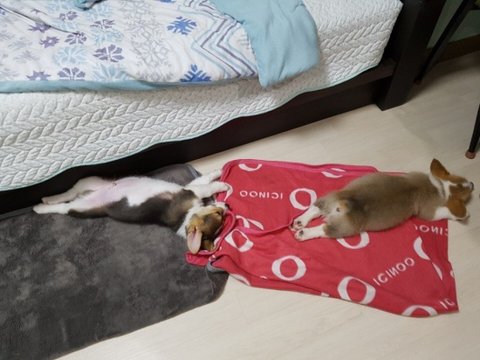 처음으로 애견펜션 간날 숙소에서 뻗은 두개님~(운전은 내가 다했는데..ㅠ.ㅠ)