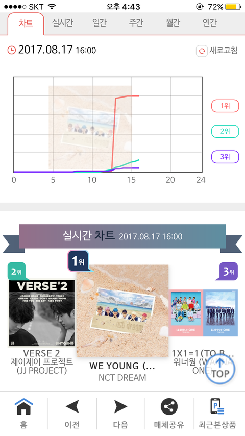 실시간 1위 판매차트...한번 찍혀주길바랬는데