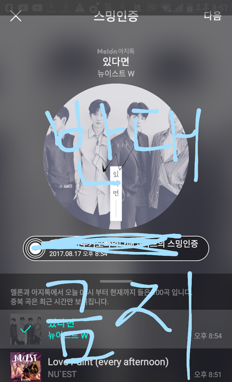반대 누르는거 금지야 할 얘기가 있으면 의견을 직접 댓글로 써 그리고 스밍인증은 필수 맞아