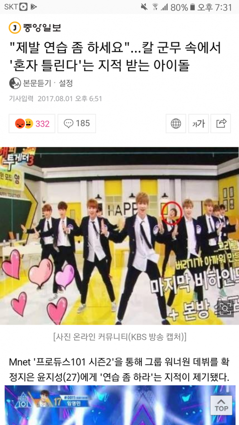 비난 아닌 비판은 받아드리기도 해야하는거 아님?? 무슨 맨날 병먹금이래 ㅋㅋ 난 프듀 애청자였지만 고정픽은 없었고 두루두루 좋아하고 지금도 워너원 응원하고 좋아하는 머글인데 일원 하나하나가 많은 연습량으로 좋은 실력을 가지게 됐을때 그룹적으로 나오는 시너지효과 무시 못하는데.. 인정할건 인정 해야지 워너원멤버 하나하나 싫어하는 사람 없고 다 좋아함 윤지성 캐릭터도 좋고 애도 착해보이고 재밌어서 좋은데 연습량이나 실력 부족한건 사실이지 참고로 윤지성 얼굴로까거나 그런애들은 극혐함 그건 비난이지