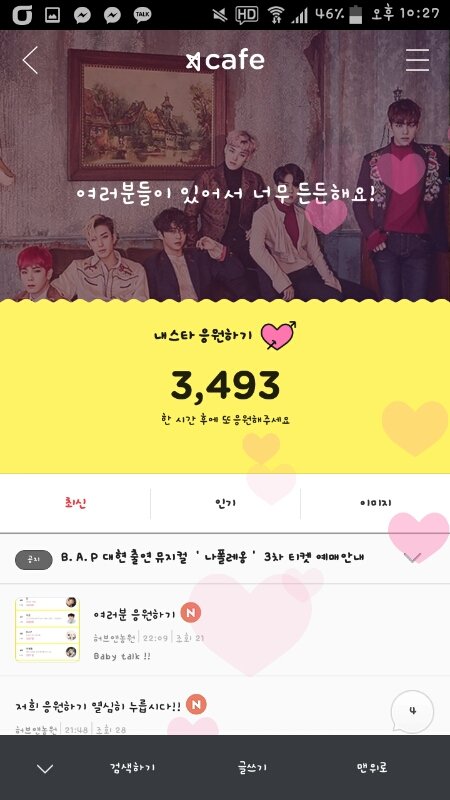 여기 응원하기 갯수로 등수매겨서 1등 2등 3등까지 혜택있대 열심히 누르자!!!!