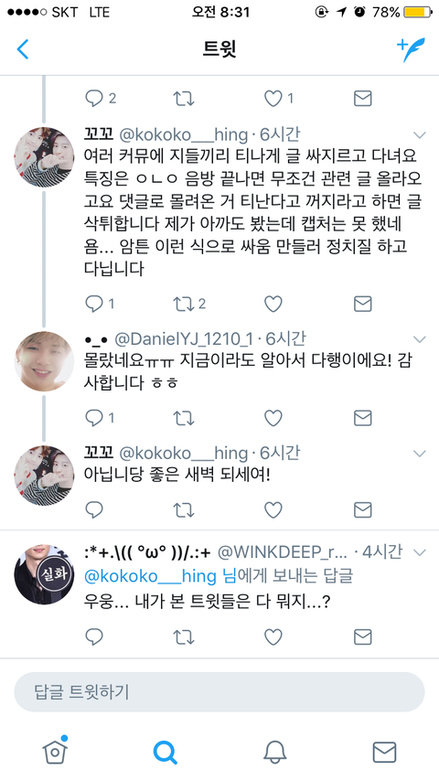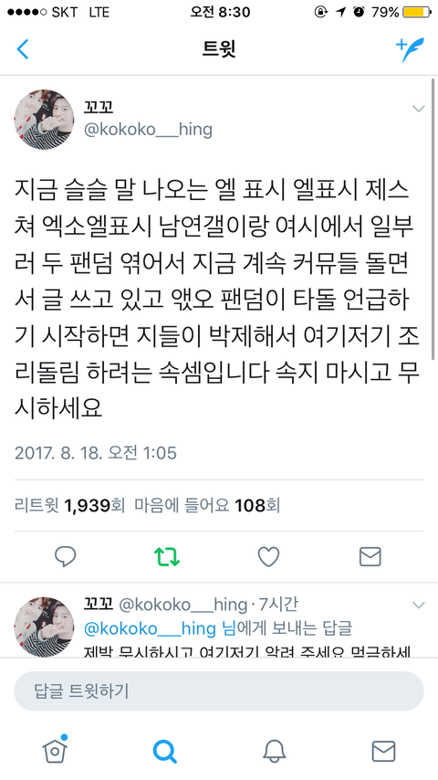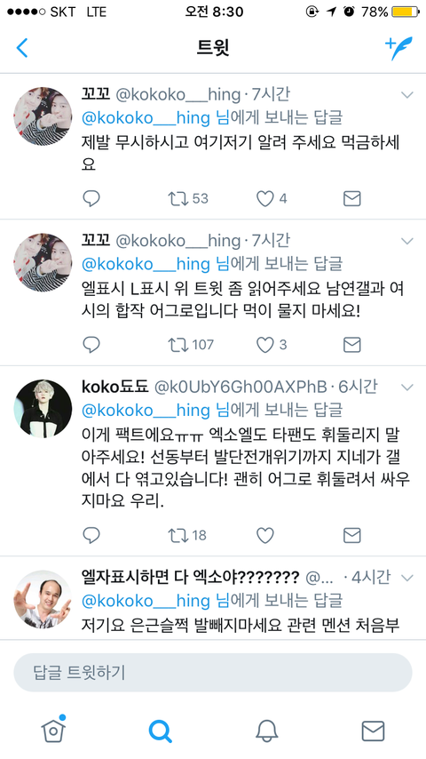 더 이상 병크 싫어요 지금 ㅌㅇㅌ에서 지랄하는 우리 팬들한테도 몇몇 팬들이 그거 아니라 하고 있고 우리도 저녁에 그거 참가하자 2000 가까이 알티된 엑소엘은 이 일에 동의하지 않는다는 증거 지랄하는 애들은 일부 무개념!
