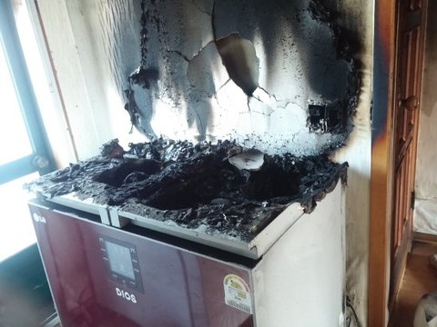 사건의 발단은 올2월이었어요 시골에 계신 84세 노모에게 4년전 할부로 사준 김치냉장고에서 화재가 발생했습니다.그날도 늙은 노모는 시골병원에 갔다오는 사이에 집에와 보니 독거노인이 혼자사는 집에서 화재가 나서 거실 전체가 전소되었고 다행인지 겨울철이라 창문을 열어놓지 않아서인지 산소가 충분하지 않았는지 온집안으로 태우지는 않았고 온갖 맹독성 그으름으로 온집안이 그야말로 초토화가 되었습니다