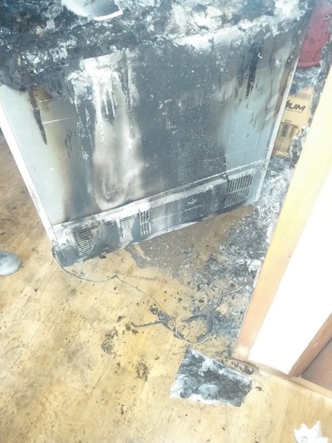 아무튼 아래 첨부한 사진을 보면 무조건 이 사건은 냉장고 두껑에서 불이나서 뒷면으로 흐른 자국도 있고 두껑코일에서 발화되어 윗부분으로 화재가 나서 집안이 전소되었는데 두껑에서 불이나서