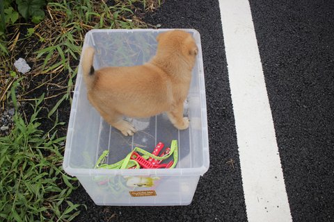큰멍멍이가 임시보호 중인 곳에서 30분 정도 거리의 거리로 강아지 한마리가 먼저 입양을 가게 되었습니다.