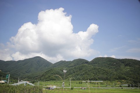 퍼붓던 비도 , 출발하는 순간 맑게 개이면서 파란하늘을 보여주고 , 맑은 하늘만큼
