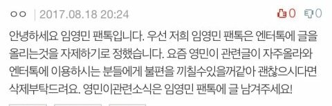 임영민/MXM팬톡에 링크를 걸어 무작정 홍보용도(추천누르러가자등)로 글을 올리지않으며 캡쳐를 하고 방토/방토+아리와 상의 후 글삭제 요청 또는 그냥 유지할지를 판단