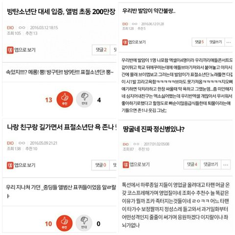 서치해서 찾은것과 줍한 것들을 보면 ㅇㅅ 팬톡에서 우리를 비방한 자료들이 나와.일단 자료는 이것들이 있어