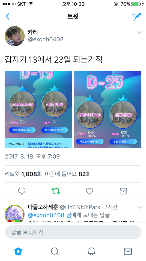 뭐야? 설마 엑소가 1위라서 기간 늘린거라던지 ㅡㅡ 아니겠지? ㅅㅂ요즘 의심병만 생겼어